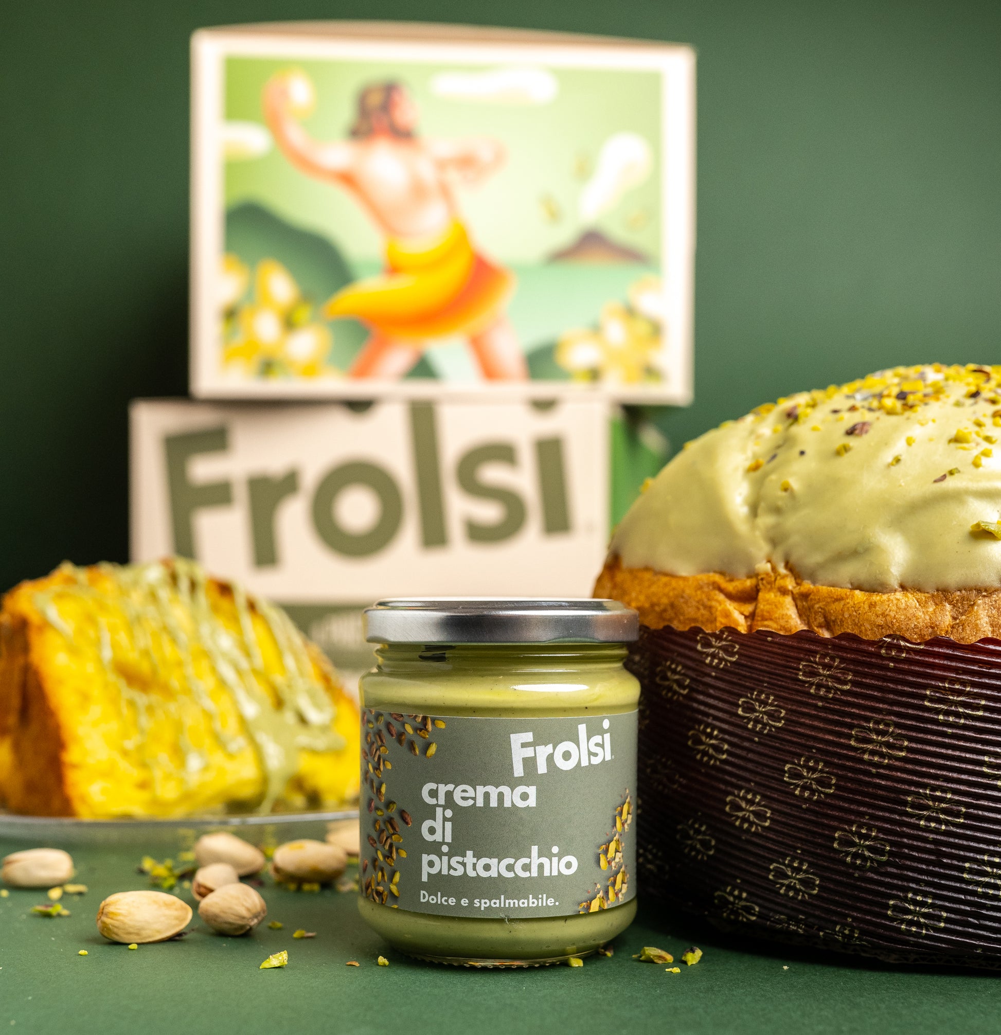 Panettone Artigianale con glassa di cioccolato bianco e pistacchio, decorato con granella di pistacchio, senza canditi, senza uvetta, senza glassa, senza mandorle, senza granella di zucchero - con vasetto di crema spalmabile al pistacchio